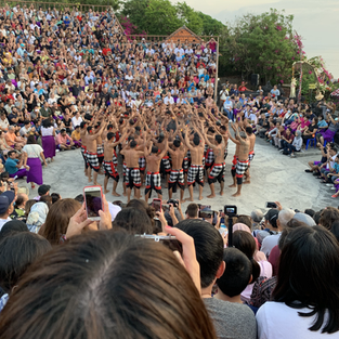 For the first 3 days, we wanted to LIVE IT UP! So we stayed at a fancy resort (Anantara Uluwatu Bali Resort). It was INCREDIBLE and worth every penny. The cliffside resort, infinity pool, access to the beach, amazing staff, yummy food, and beautiful views were some of the reasons we loved it there! We spent most of our time ordering the delicious appetizers and drinking yummy drinks at the infinity pool- & the best part? It wasn't crowded! Half of the time, we were alone, and the other half of the time, there were just a few other couples. It was all adults and felt upscale! We barely left the resort but we did go to the suggested fire dance, and that transportation was set up with the resort! We also walked to Padang Pandang beach, which is one of the top beaches in Uluwatu; we swam and then walked back along the beach to our resort. On our walk back, a manatee swam right up to us and we watched it swim and flip around. For dinner one night, we also ventured into town and ate at Hatch, which is an incredibly colorful, fun, and DELICIOUS restaurant that has live DJs at night!