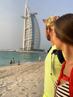 We had a day layover in Dubai and decided to make the most of it! Since we only had one full day, we packed in all the sightseeing. We stumbled upon a taxi driver who offered to take us anywhere we wanted for a flat rate of $200 USD for the day; we snatched it up and started at the palm. We were in awe of how large the palm was (from Chicago, we thought it would be more like Navy Pier, but it was HUGE). We then went to the Burj Al Arab so we could see the world's only 7-star hotel- we looked at it from afar, which was super cool to see. We then went to the mall, where we took photos of the Burj Khalifa from down low- and then paid to go up high! I think it cost us $300 USD to take the elevator to the tippy top and enjoy the view with some appetizers to snack on. It was amazing and worth it for us! Also, a great photo opp! While in the mall, we also saw the aquarium, shopped a bit, and ate lunch. We spent a few hours here before calling back our driver to keep going. We then went to the Old Dubai, where we walked through the streets looking through hundreds of vendors and also had our heads wrapped with scarves! We then traveled to the Frame, which was super cool, fun, and entertaining! This was a quick stop, but awesome to see! We looked out the window the whole day and took in as much of Dubai as we could in 24 hours- and then went right back to the mall to play some VR *virtual reality*. After that, we watched the fountain show, which was the most incredible experience I have ever seen, we caught the last show of the night but I would have watched that fountain for hours if I had the opportunity.